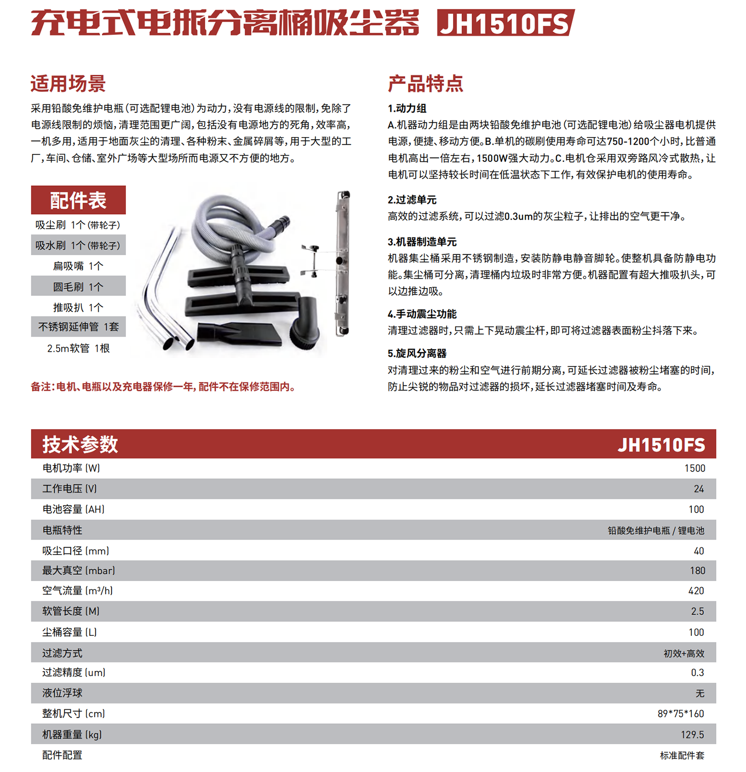 采用铅酸免维护电瓶(可选配锂电池)为动力,没有电源线的限制,免除了电源线限制的烦恼,清理范围更广阔,包括没有电源地方的死角,效率高,一机多用,适用于地面灰尘的清理、各种粉末、金属碎屑等,用于大型的工厂,车间、仓储、室外广场等大型场所而电源又不方便的地方。