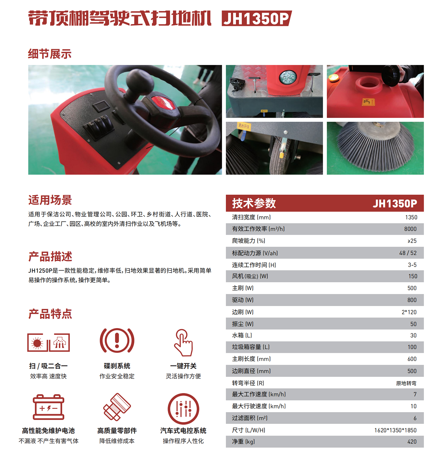 JH1250P是一款性能稳定,维修率低,扫地效果显著的扫地机。采用简单易操作的操作系统,操作更简单。
